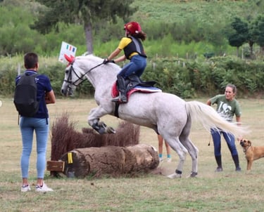 Il secondo test è l’impegnativo cross country che si svolge lungo un tracciato su terreno vario disseminato da una serie di ostacoli naturali e fissi come laghetti, macerie, tronchi abbattuti, cataste di legna, fossi, staccionate, banchine, ed altri, da affrontare entro un tempo prestabilito.